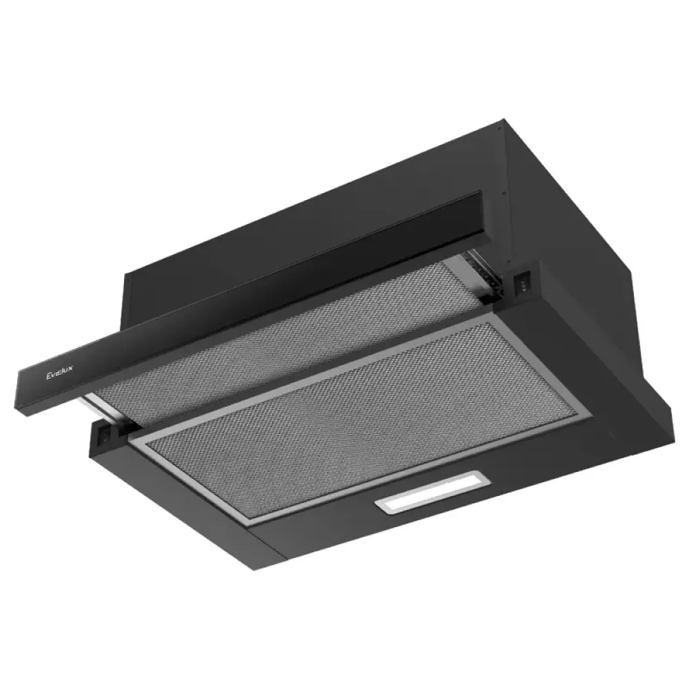 Встраиваемая вытяжка EVELUX, телескопическая, 50 см, 2 скорости, произваодительность 710 м3/ч, механическое управление, LED освещение, Hi-Tech, цвет черный