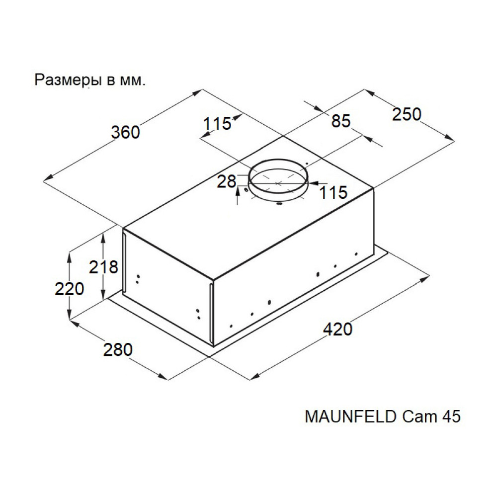 Встраиваемая вытяжка MAUNFELD/ Встраиваемая вытяжка, 45 см, 450 м3/ч, 47 дБ, 3 скорости, черный
