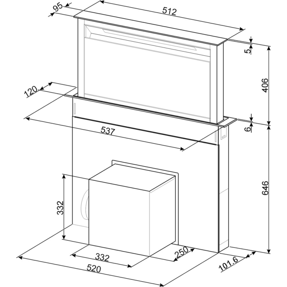 Встраиваемая вытяжка SMEG/ Встраиваемая вытяжка SMEG, в столешницу, 60 см, 4 скорости, интенсивный режим, отсрочка старта, сенсорное управление, цифровой дисплей, производительность 680 м3/ч, LED подсветка, цвет черный