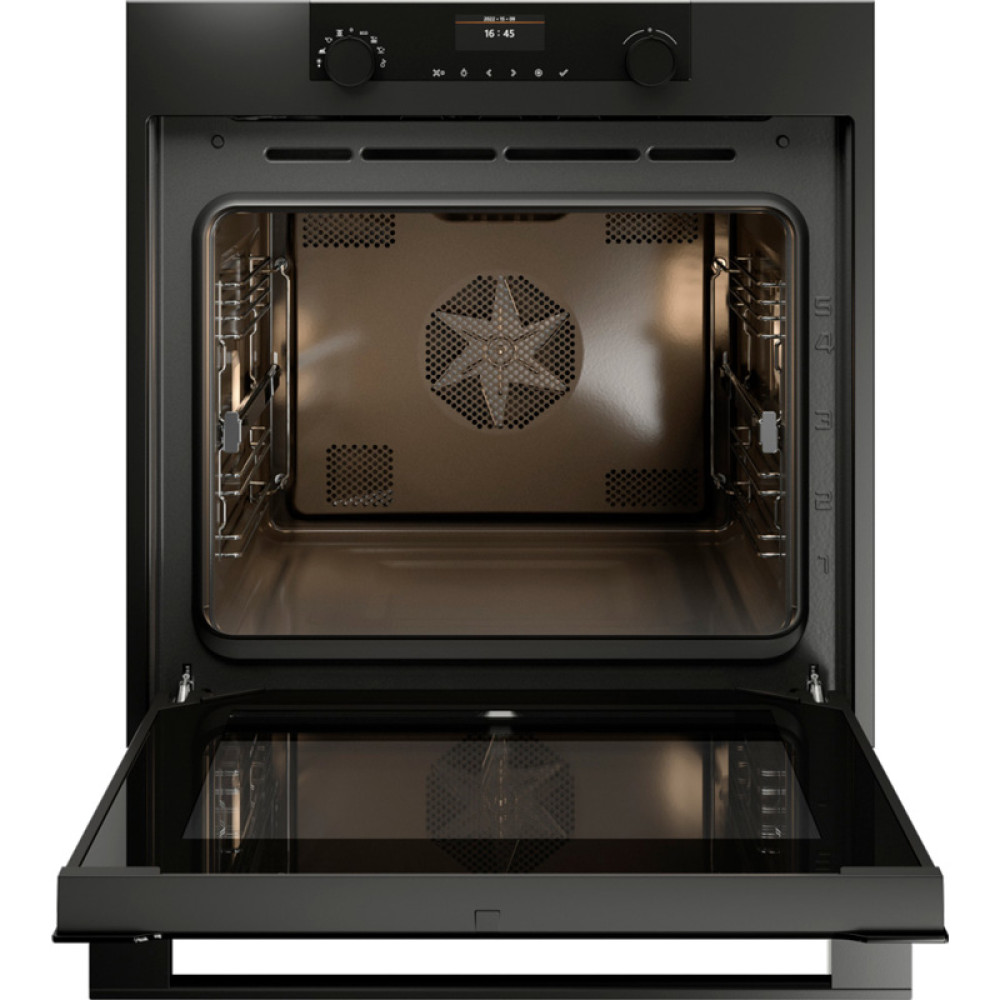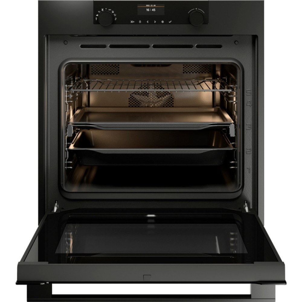 Управление духовым шкафом осуществляется с помощью сенсорных и поворотных элементов, что делает процесс настройки интуитивно понятным. Наличие дисплея позволяет легко отслеживать выбранные параметры и время приготовления. Таймер поможет вам контролировать процесс, не отвлекаясь на постоянное наблюдение за духовкой.