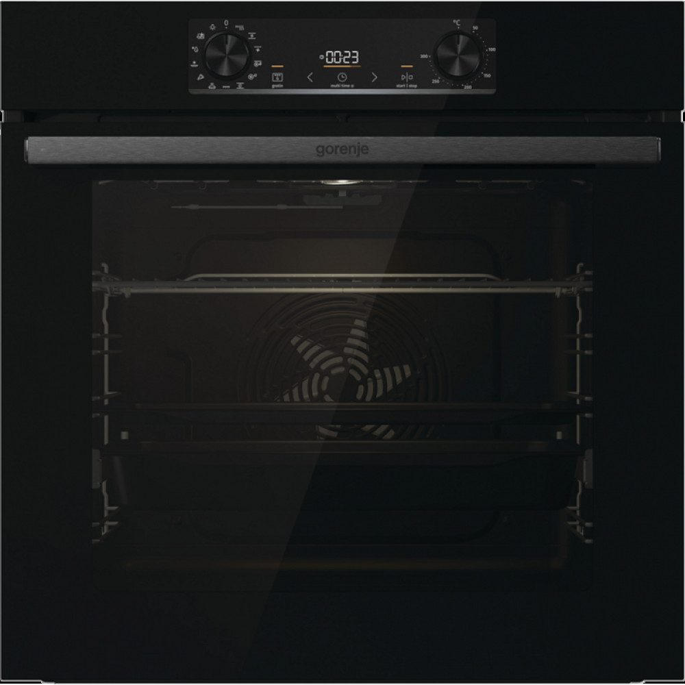 Встраиваемые электрические духовки GORENJE/ Духовой шкаф, Полезный объем: 77 л, поворотное/сенсорное управление, очистка паром, A, 59.5 × 59.5 × 56.4 см, цвет:черный ,цвет ручки :темно-серый матовый нержавеющей стали