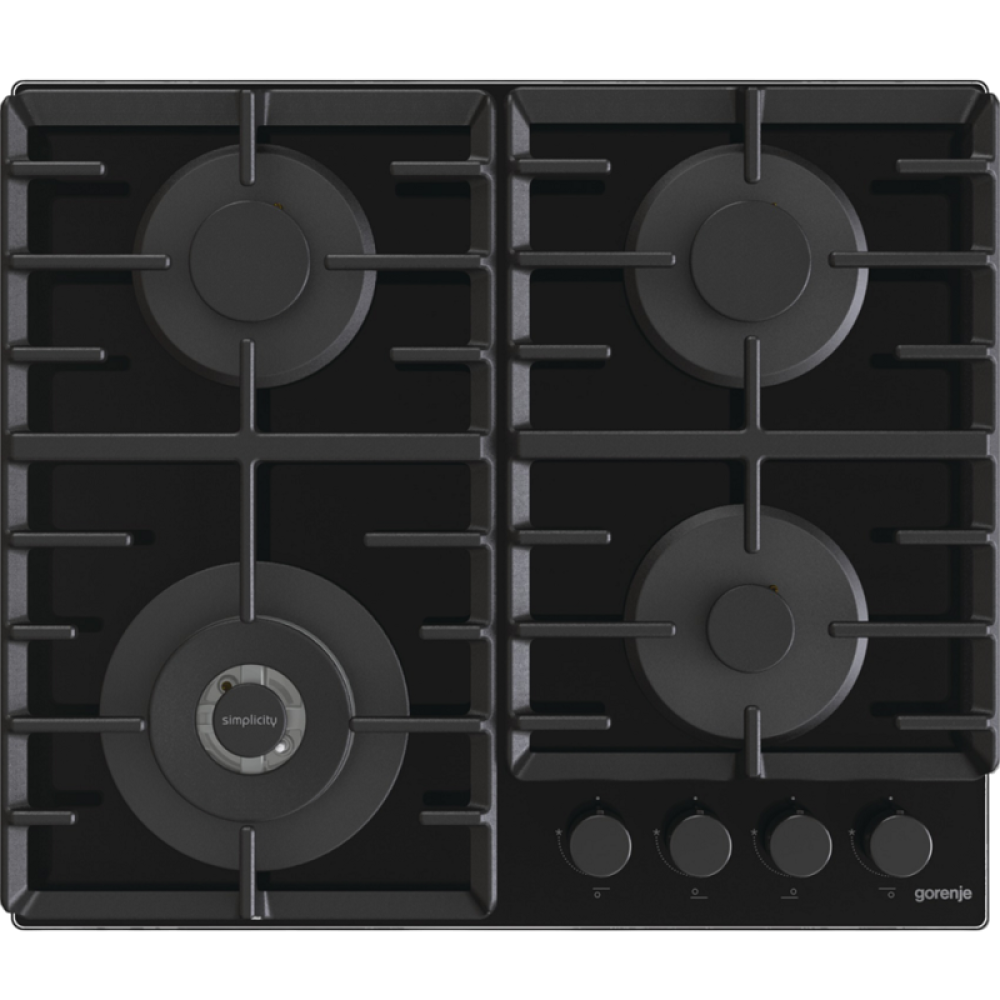 Встраиваемые газовая панели GORENJE/ Газ, 60 × 13 × 52 см, Газ-контроль, чугунные решетки, вок, черный