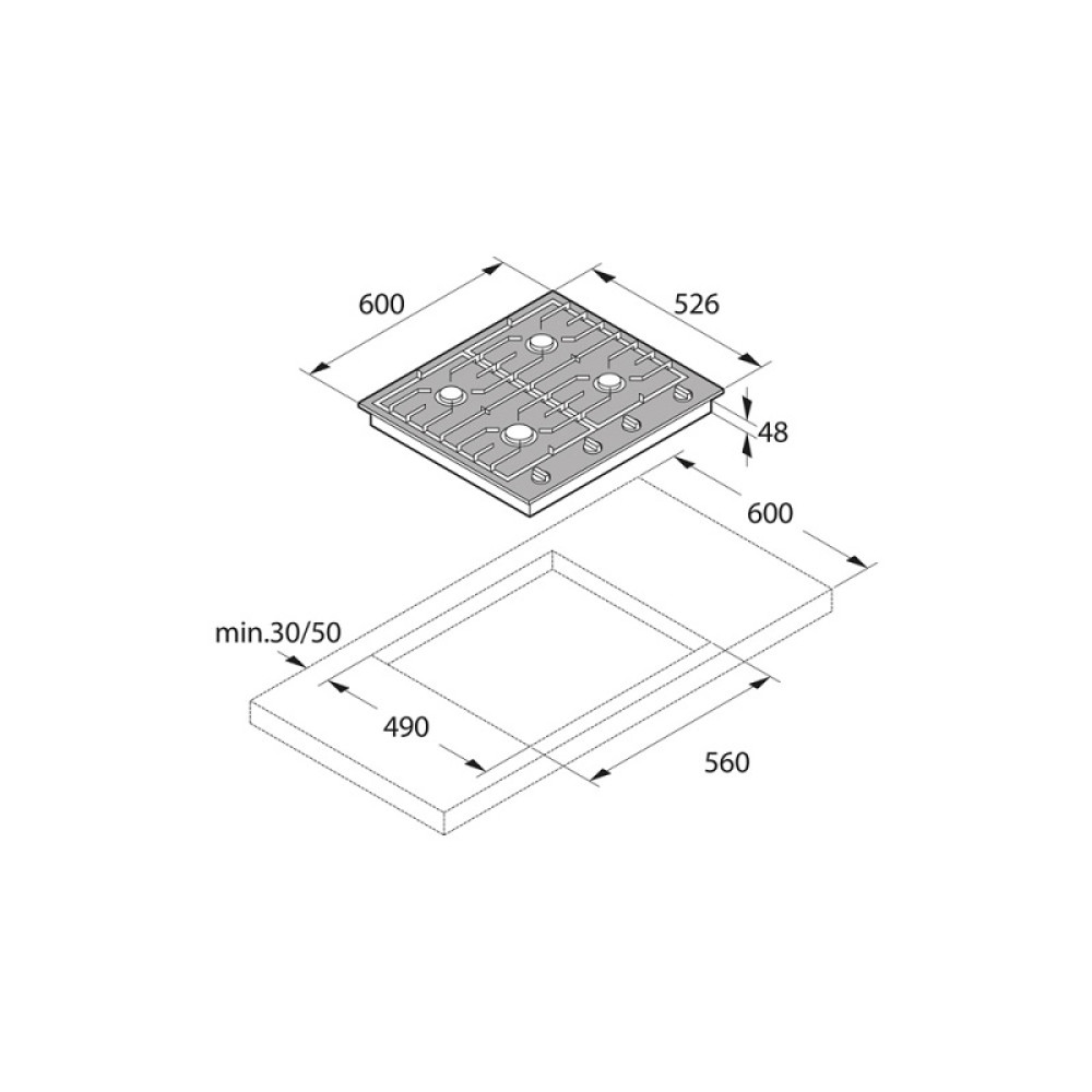 Встраиваемые газовые панели ASKO/ Арт. 476653 ПРОМО ; газовая, 4.8 х 60 х 52.6, 4 конфорки, конфорка повышенной мощности Super Vario Wok, механическое управление, поворотные переключатели, цвет: нержавеющая сталь