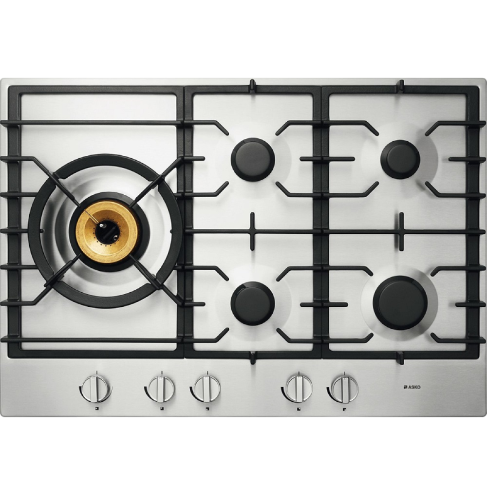 Встраиваемые газовые панели ASKO/ Арт. 476657 ; газовая, встраиваемая, 4.8 х 75 х 52.6, 5 конфорок, конфорка повышенной мощности Super Vario Wok, механическое управление, поворотные переключатели, нержавеющая сталь