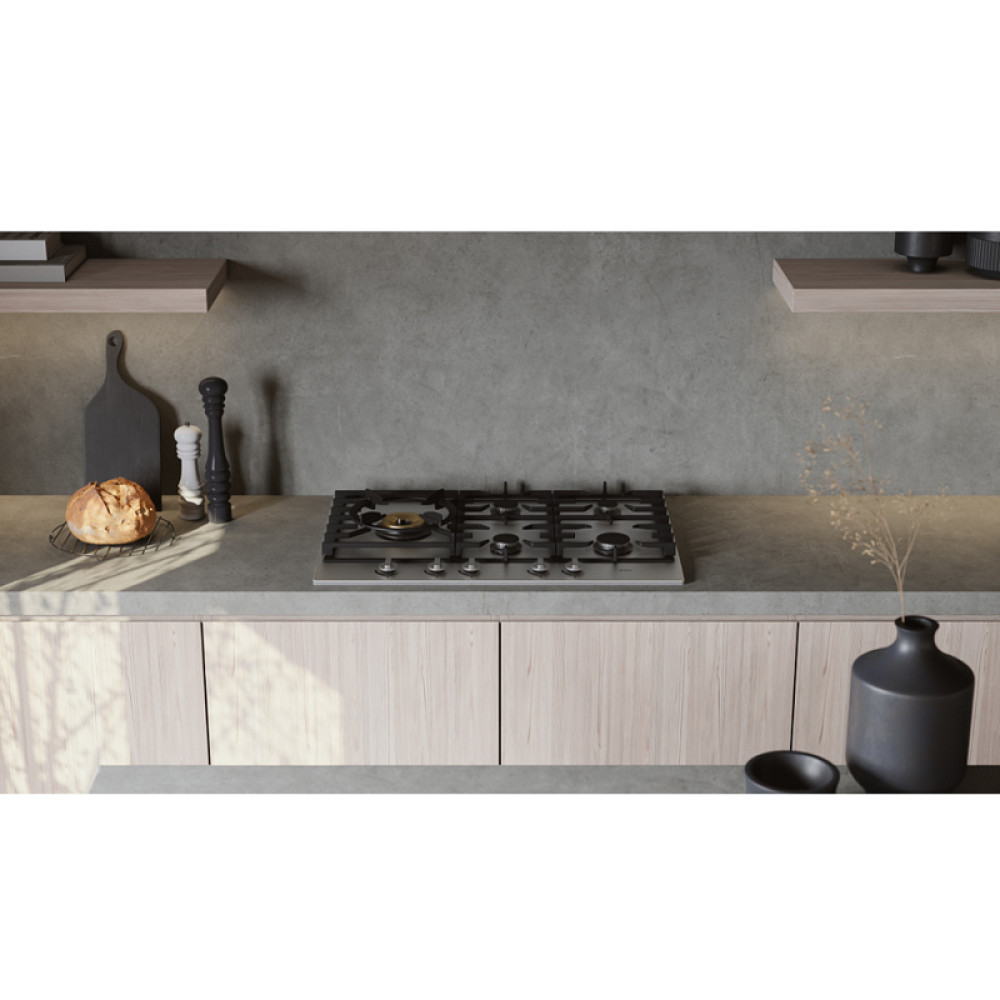 Газовая варочная панель HG1776SB максимально безопасна благодаря продуманной системе газ-контроль. Гибридные конфорки A+ позволяют регулировать мощность пламени, создавая высокую теплоотдачу.