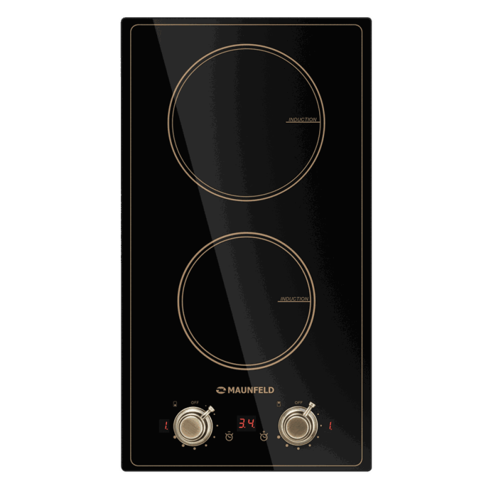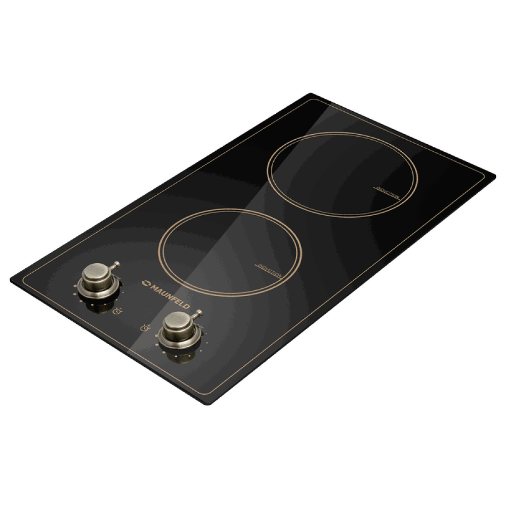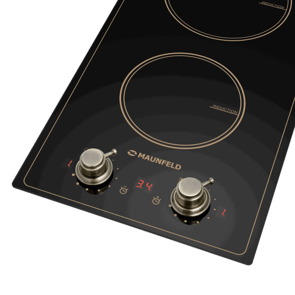 Встраиваемые индукционные панели MAUNFELD/ Встраиваемые индукционные панели MAUNFELD CVI292MBKBR 30 см, Домино, Управление: механическое, стеклокерамика, мощность конфорок 1200, 2000 Вт, автоматическое выключение, таймер, цвет черный/бронза