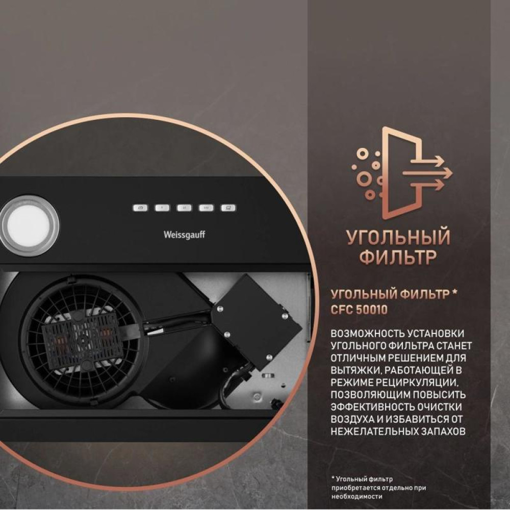 Встраиваемые кухонные вытяжки/ Вытяжка встраиваемая FIONA 60 черный WEISSGAUFF