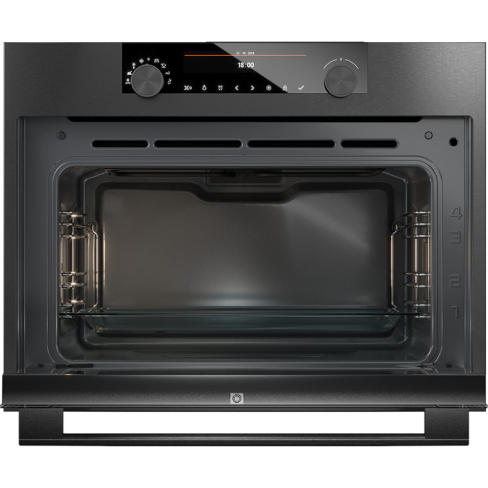 Встраиваемые микроволновые печи ASKO/ Арт. 736346 ; 45.8 х 59.7 х 56.8 см, 51 л, 67 автоматических программ, очистка Aqua Clean, цветной дисплей, сенсорные и поворотные переключатели, черный цвет