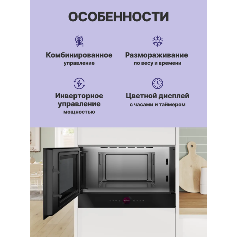 Встраиваемые микроволновые печи BOSCH/ Встраиваемые микроволновые печи BOSCH BFL7221B1 900Вт, 5 режимов, инвертер, 21 л, черный, петли слева