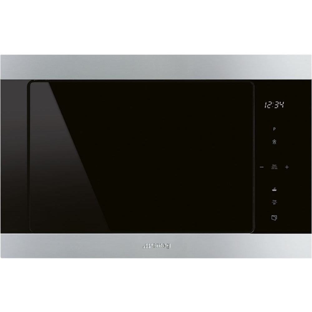 Встраиваемые микроволновые печи SMEG/ Classica, Встраиваемая микроволновая печь, 60 см, высота 38 см, черное стекло + нержавеющая сталь.