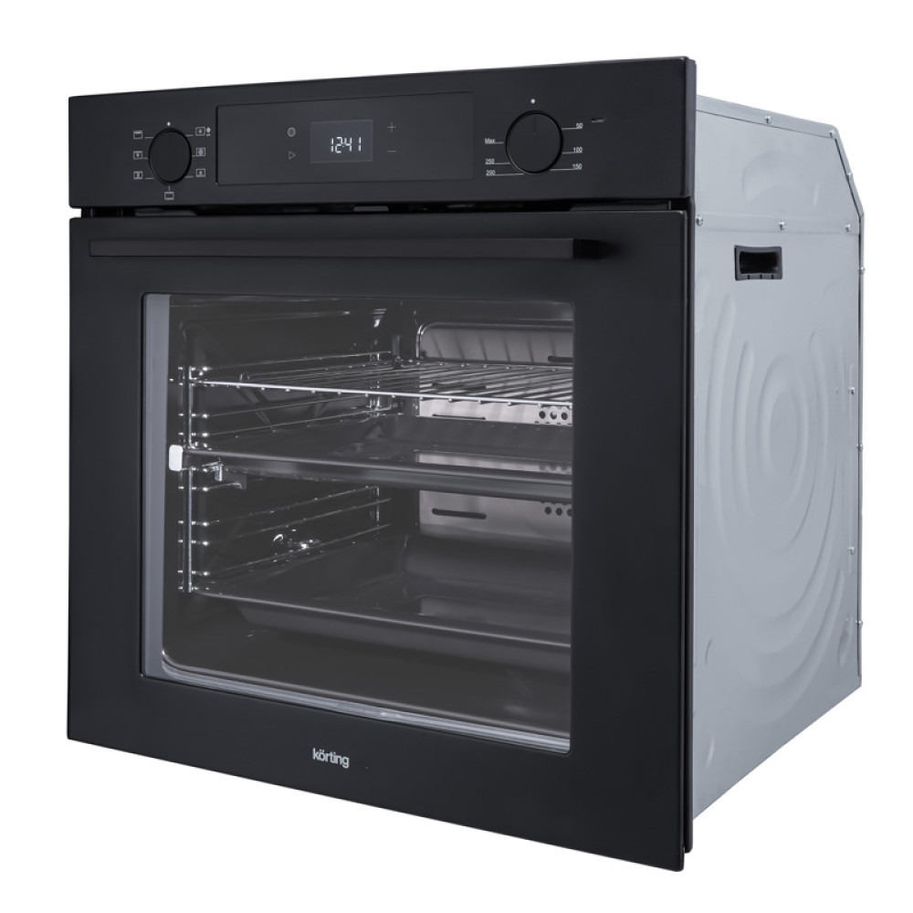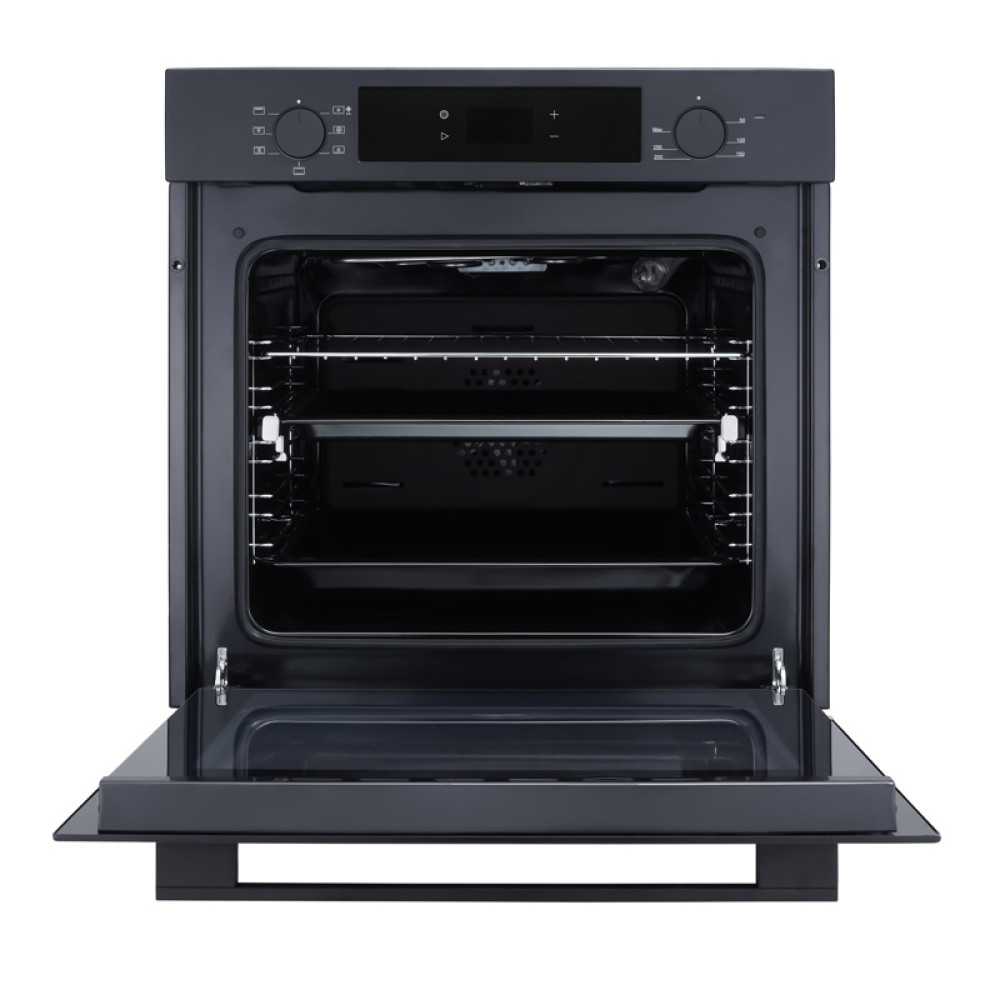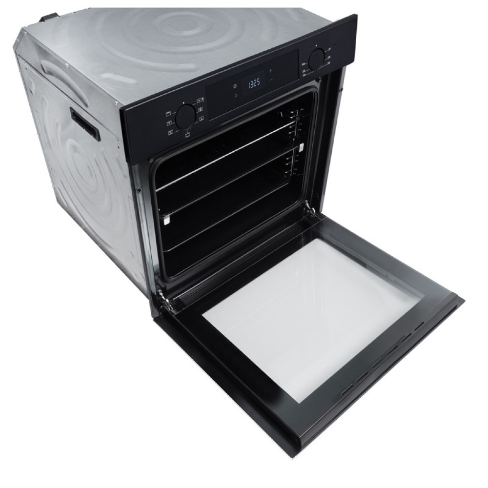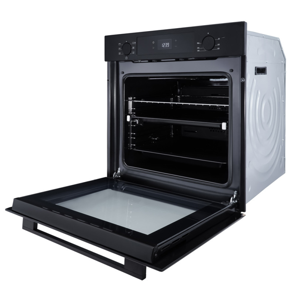 Встраиваемый духовой шкаф/ Crystal, 59.8 х 59.5 x 56 см, 7 режимов нагрева, гриль, LED дисплей белого цвета, таймер, телескопические направляющие одного уровня, Soft Close, черный