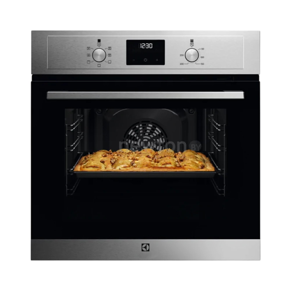 Электрический духовой шкаф Electrolux EOF3H50BX может использоваться для запекания крупной птицы целиком или приготовления пищи на нескольких уровнях одновременно. Это обеспечивается благодаря отделению с полезным объемом 65 л.