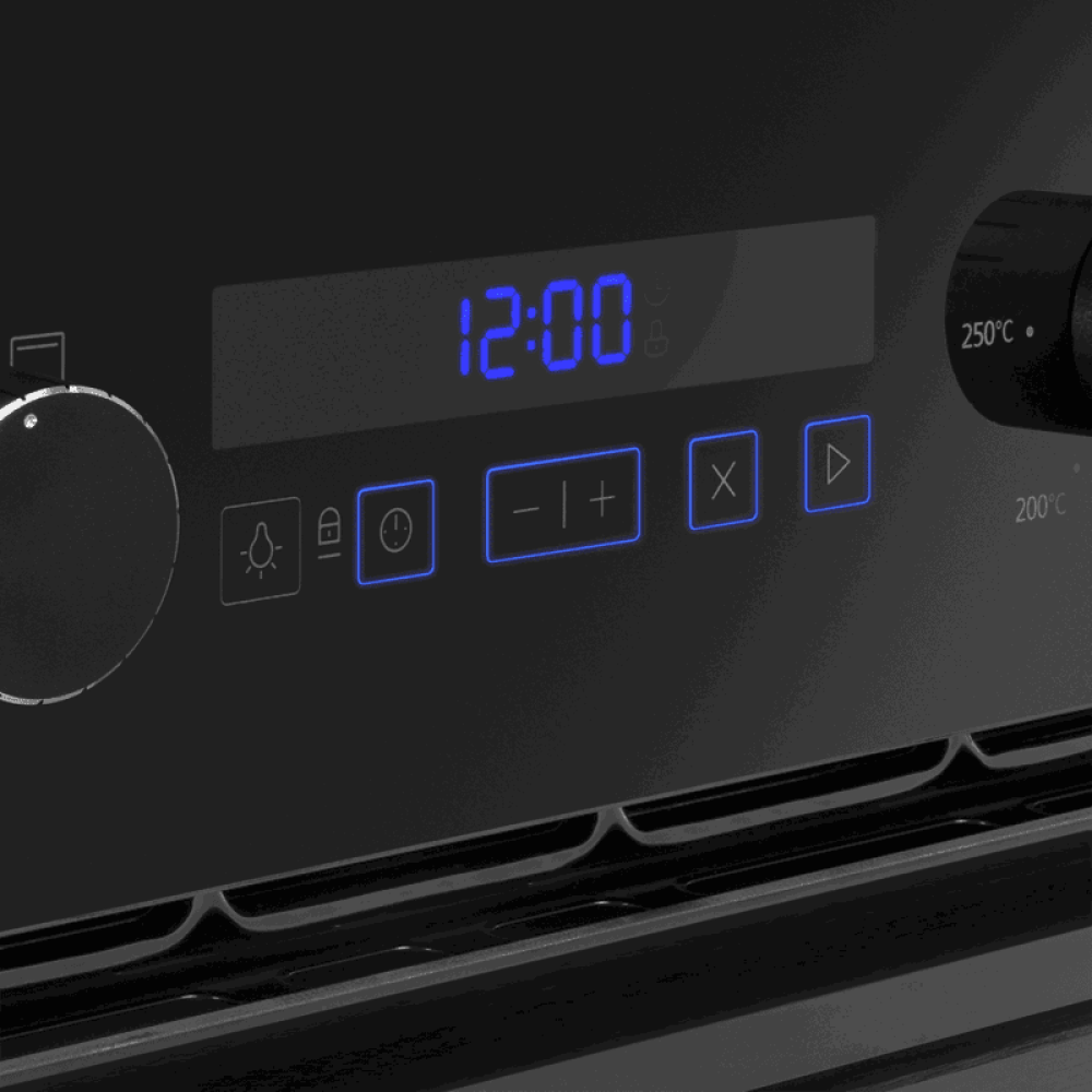 Лицевая часть блока управления сделана из высококачественного жаропрочного стекла черного цвета, окрашенного по всему объему, что является отличительной чертой бытового прибора премиум-класса.