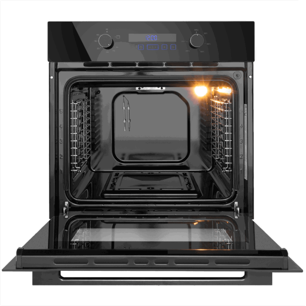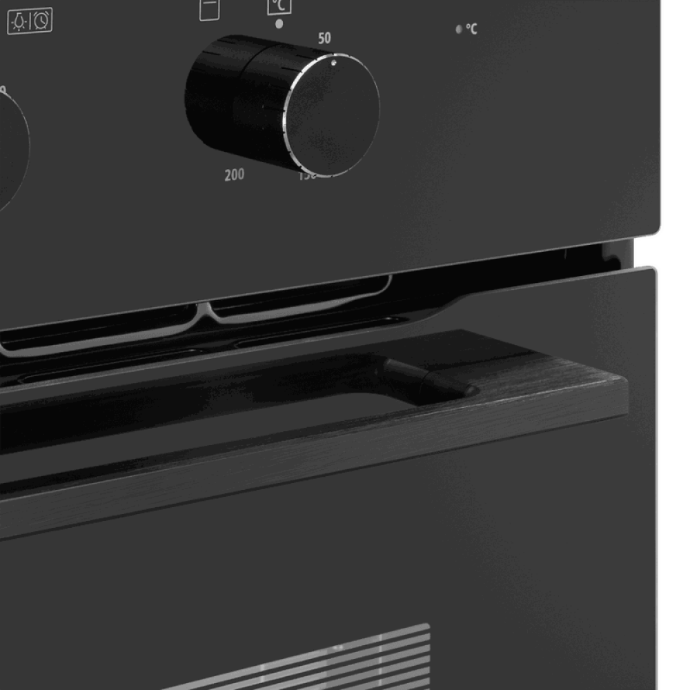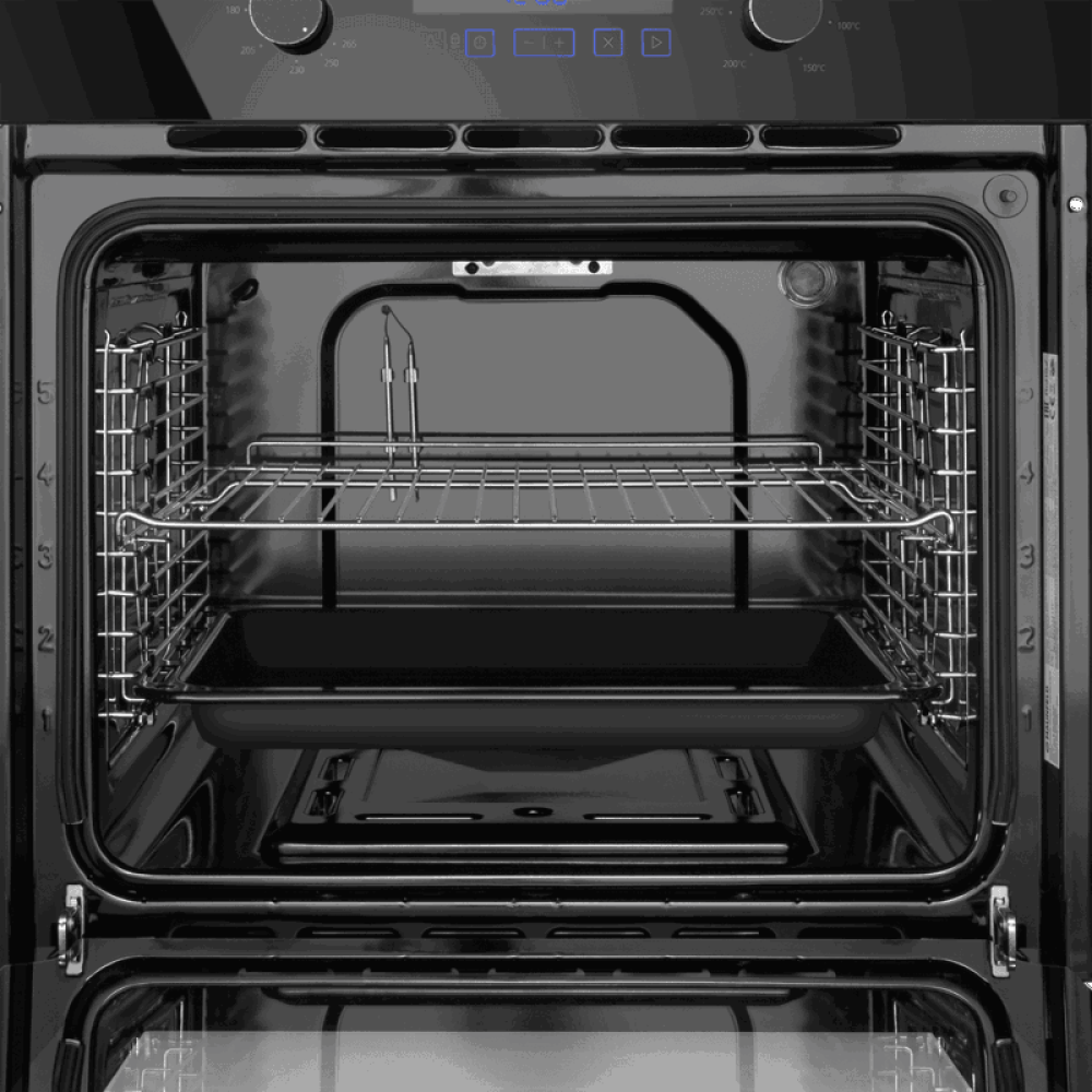 Объем 70 л при стандартной ширине 60 см позволяет готовить одновременно несколько блюд, разместив решетку или противень на одном из 5-ти уровней боковых направляющих. Внутреннее покрытие камеры выполнено из специальной легкоочищающейся эмали черного цвета.