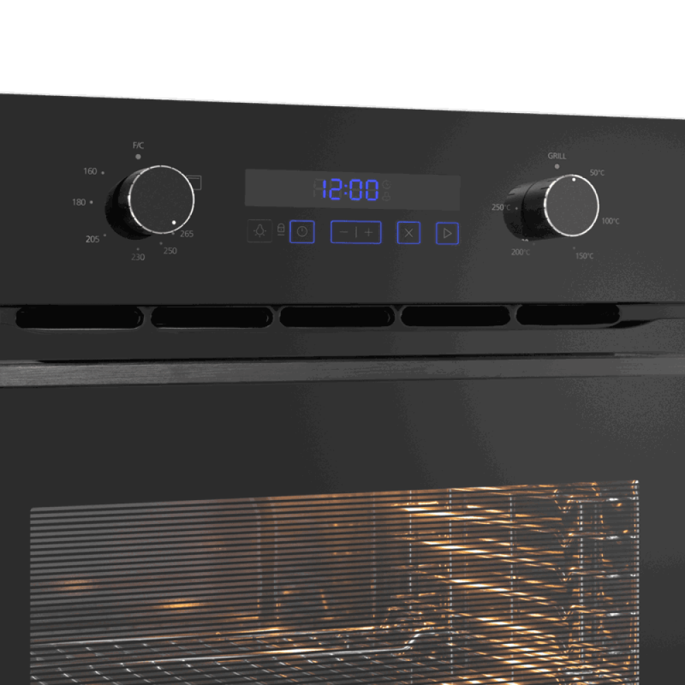 Встраиваемый духовой шкаф MAUNFELD/ Встраиваемый духовой шкаф MOGM703B2 с электрическим грилем, полезный объем 70 л, 3 режима работы, комбинированное управление, гидролизная очистка, максимальная температура 265 С, таймер, гриль, электроподжиг, газ-контро