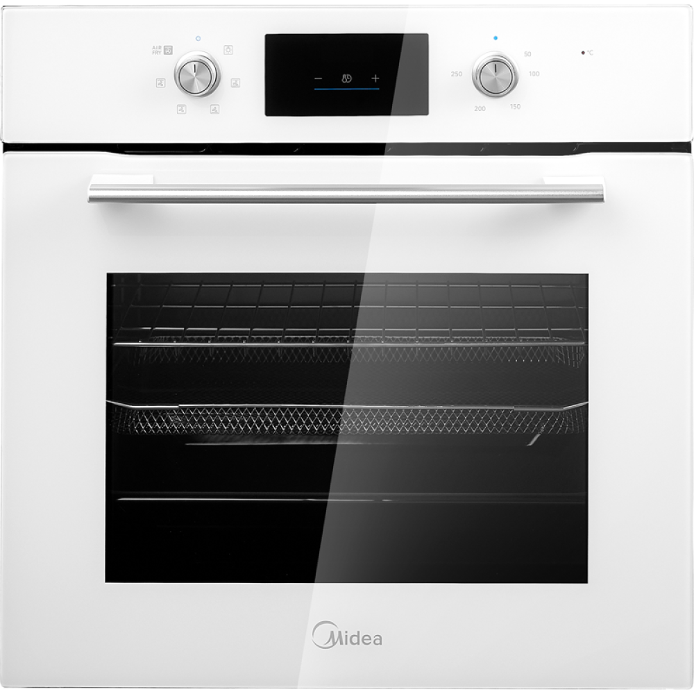 Встраиваемый духовой шкаф Midea/ MDK/Встраиваемый духовой шкаф Midea, объем 60 л, сенсорный программатор, цифровой LED дисплей, 6 режимов, утапливаемые переключатели, цвет белое стекло