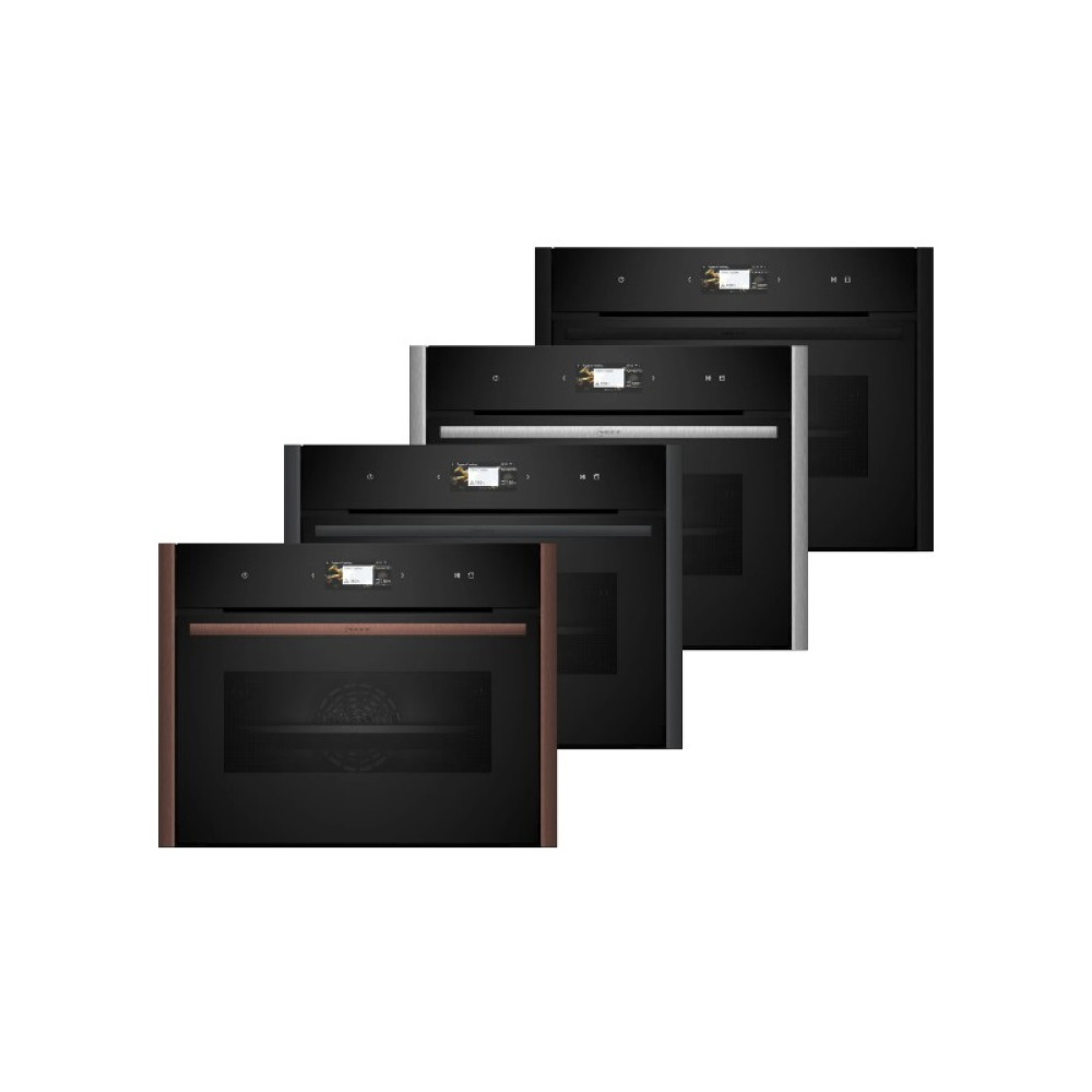 Встраиваемый духовой шкаф NEFF/ Без боковых профилей и ручки (Аксессуар заказывается отдельно), компактный с функцией пароварки, объем 47 л, 23 режима нагрева, 4.1-дюймовый TFT-дисплей, сенсорное управление, температура 40-250 градусов, Hotair 4D, LED ос