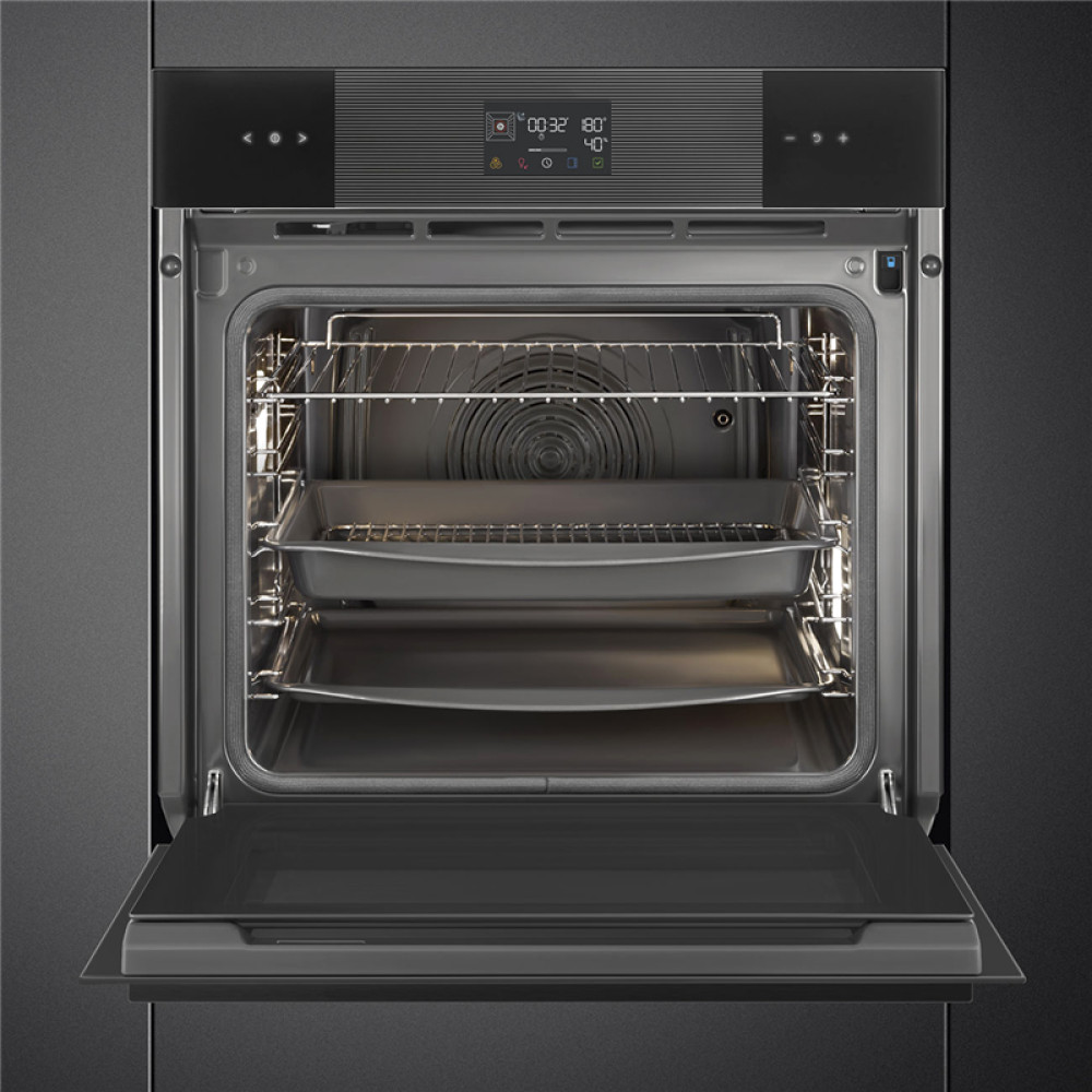 Встраиваемый духовой шкаф SMEG/ 60 см, с паром, Linea, пиролитическая очистка, 12 программ, 68 л, черный цвет