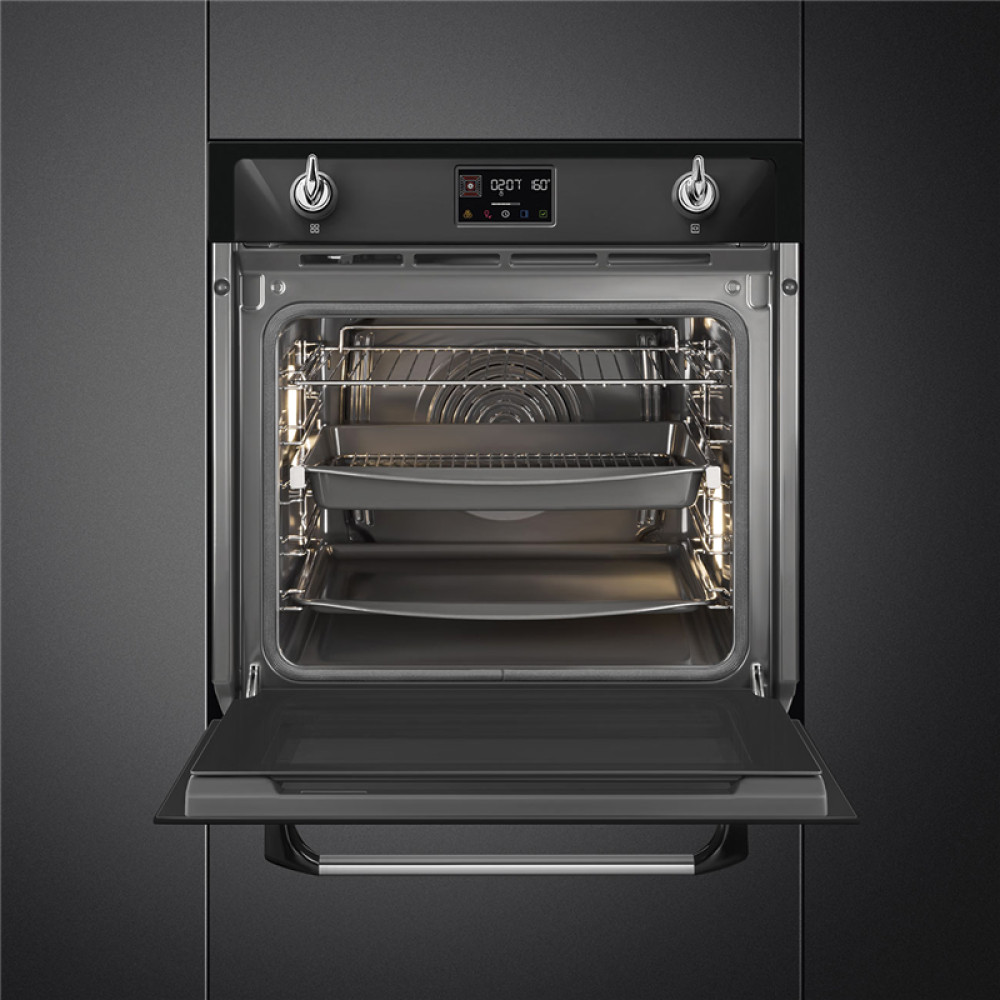Встраиваемый духовой шкаф SMEG/ Многофункциональный духовой шкаф с пароувлажнением и пиролизом, 60 см, 12 функций, цвет чёрный, Victoria