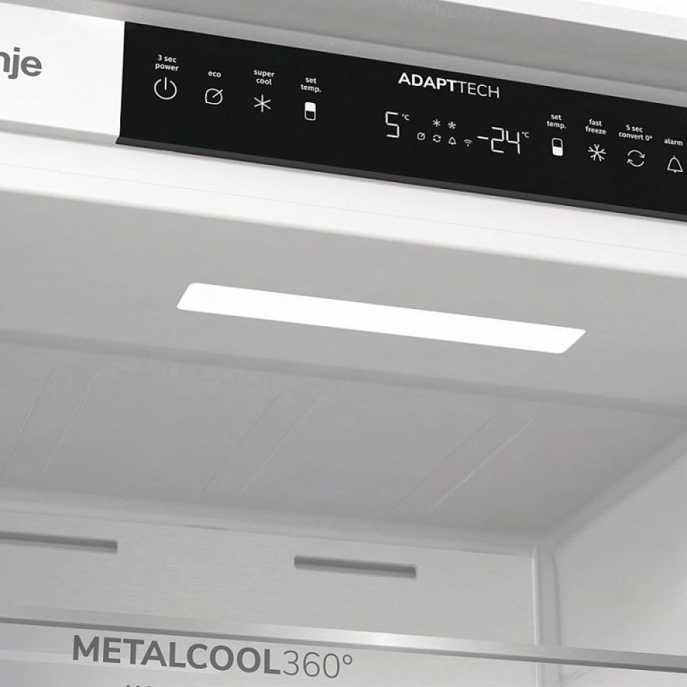 Встраиваемый холодильник Gorenje/ Встраиваемый холодильник Gorenje, 193 см, электронное управление, цифровой дисплей, Wi-Fi, NoFrost Dual, Multiflow 360, контейнер CrispZone с контролем влажности, функция ConvertActive, AdaptTech, MultiAdjust, жесткое кре
