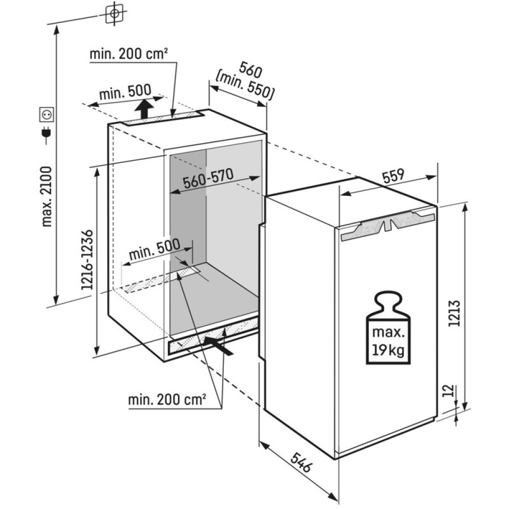 Встраиваемый холодильник Liebherr IRBc 4120-22 001 из серии Prime без морозильной камеры является современным и функциональным решением для кухни, сочетаетающим в себе передовые технологии и практичный дизайн. Этот холодильник идеально вписывается в любой интерьер благодаря своей встраиваемой в нишу до 122 сантиметров конструкции, что позволяет сохранить единый стиль кухонного пространства. Это надежное и стильное решение для хранения продуктов, которое гарантирует свежесть и качество каждый день. С его помощью вы сможете создать идеальные условия для хранения продуктов, не жертвуя при этом внешним видом вашего кухонного интерьера. Вы можете быть уверены в том, что ваша еда будет храниться в идеальных условиях, а ваш интерьер останется стильным и современным. Дизайн и интеграция Liebherr IRBc 4120-22 001 имеет классический внешний вид, а благодаря возможности интеграции в кухонный гарнитур он скрывается за фасадом, создавая визуальную целостность и гармонию в интерьере. Перенавешиваемая дверь с жёстким креплением и углом открытия 115° позволяет оптимально разместить устройство на кухонном пространстве. Вместительность и организация Объем холодильной камеры предоставляет достаточно места для хранения продуктов. Внутреннее пространство организовано с учетом удобства: регулируемые полки позволяют адаптировать пространство под различные продукты. Одной из ключевых особенностей холодильника является система BioFresh в двух нижних ящиках, которая поддерживает температуру в зоне сохранения свежести немного меньше, чем в основном отделении устройства для оптимальных условий хранения продуктов. Удобство использования Сенсорная панель управления Liebherr IRBc 4120-22 001 интуитивно понятна и проста в использовании. С её помощью легко настраивать температуру и режимы работы. Энергоэффективность и безопасность Liebherr IRBc 4120-22 001 обладает классом энергоэффективности C, что обеспечивает низкое потребление электроэнергии и способствует экономии средств. Встроенные системы безопасности, такие как блокировка управления от детей и звуковая индикация открытой двери, делают этот холодильник идеальным выбором для семей.