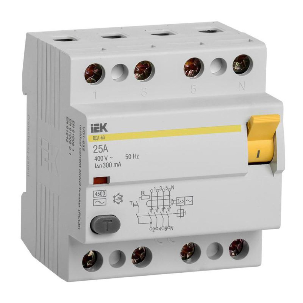 Выключатель дифф.тока УЗО IEK MDV10-4-025-300 ВД1-63 25A 300мА AC 4П 400В 4мод белый (упак.:1шт)