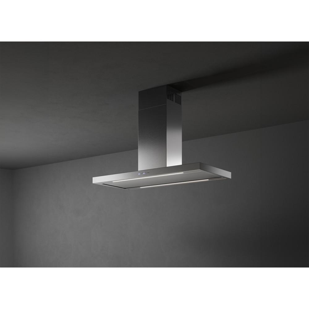 Вытяжка FALMEC PLANE IS STEEL 120 (PLUS), 120 см, островная, электронное управление, светодиодное освещение, 4 скорости, отвод/циркуляция, максимальная производительность 800 м3/ч, угольный фильтр (опция), цвет нержавеющая сталь