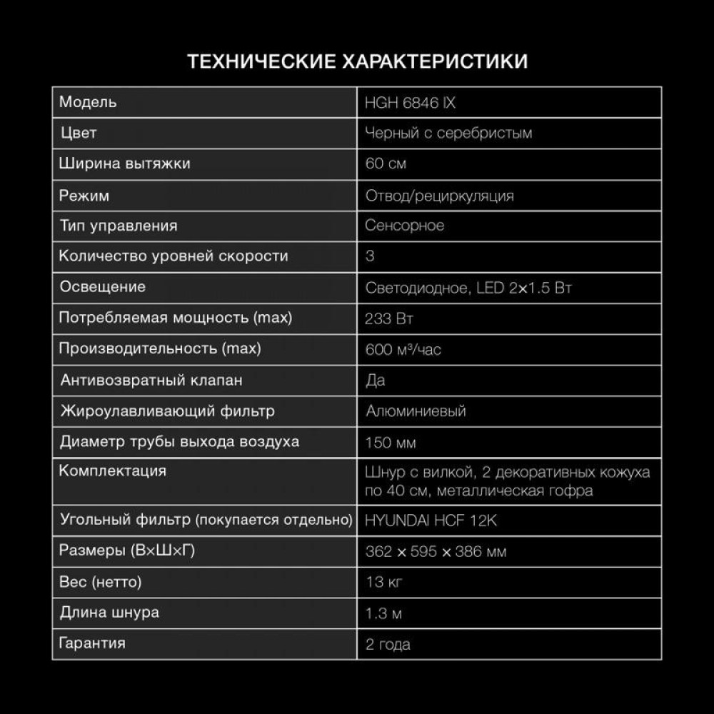 Вытяжка каминная Hyundai HGH 6846 IX черный/нержавеющая сталь управление: сенсорное (1 мотор)