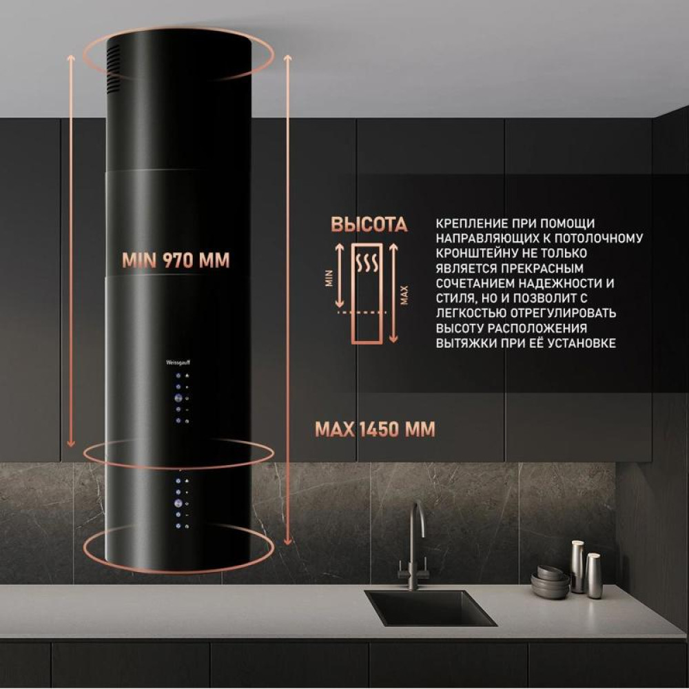 Вытяжка каминная Weissgauff Tubus 1406 Island черный управление: кнопочное (1 мотор)