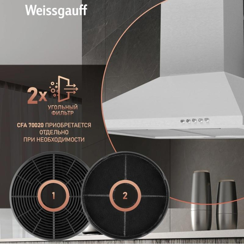 Вытяжка каминная Weissgauff Zosma 60 PB IX нержавеющая сталь управление: кнопочное (1 мотор)