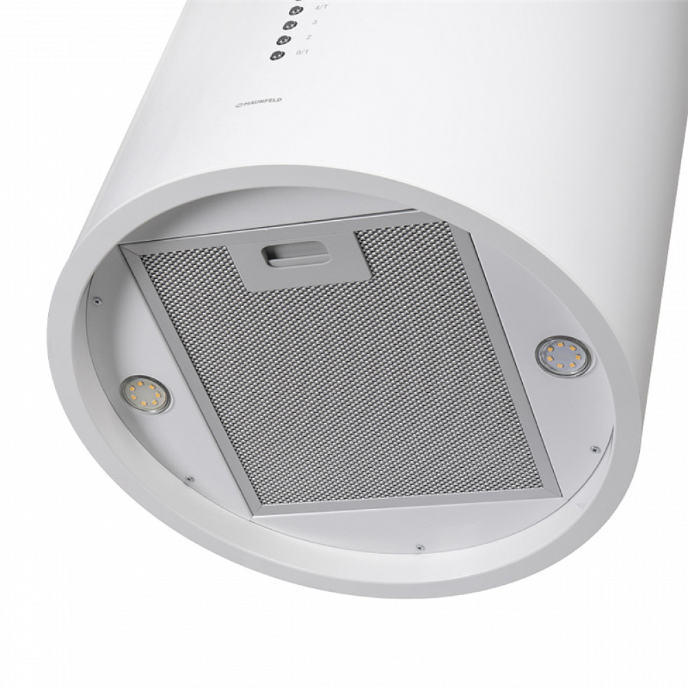 Вытяжка MAUNFELD LEE ISLA 39 WHITE островная вытяжка с потолочным креплением, 1050 м3, кухни до 40м2, 52дБ, LED, электронное управление, в опции угольный фильтр CF172C, белая