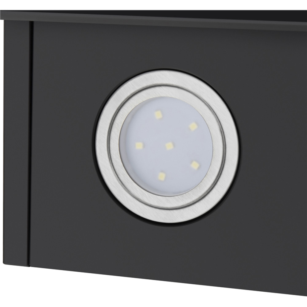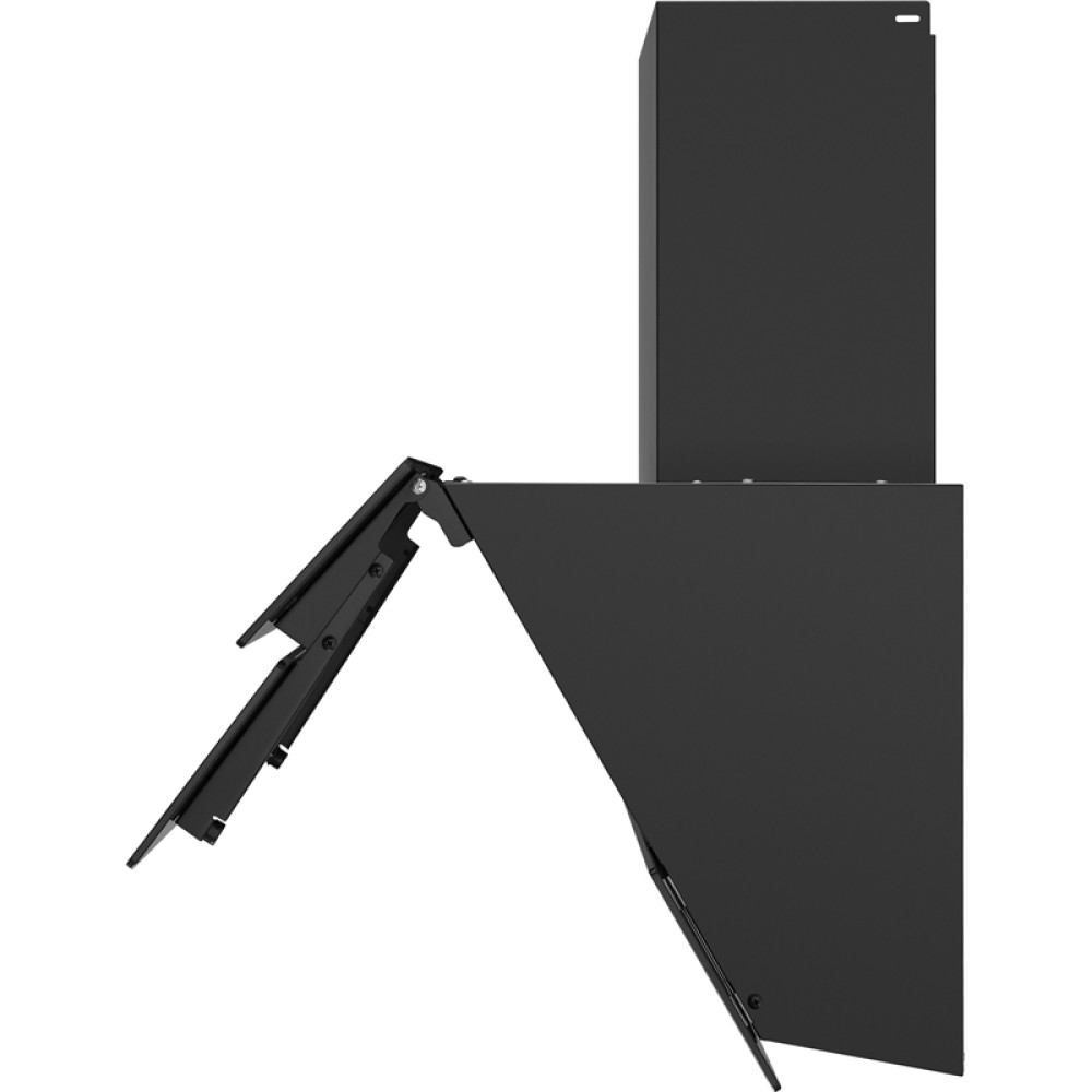 Стильная наклонная вытяжка черного цвета шириной 50 см - это оптимальное решение для большой кухни (до 20 кв.м). Монтируется на стену над поверхностью плиты и работает в двух режимах: отвода (при подключении к системе вентиляции) и рециркуляции (при использовании сменного угольного фильтра).Корпус выполнен из нержавеющей стали. Дизайнерский фасад представляет собой каскад из 3-х сверхпрочных закаленных глянцевых стекол в цвет корпуса. Благодаря такому расположению панелей, принцип периметрического втягивания воздуха действует особенно эффективно.Две верхние откидные панели скрывают алюминиевый многослойный жироулавливающий фильтр, который легко снимается и полностью разбирается, что сильно упрощает его чистку.Кнопочное управление находится на панели освещения и позволяет выбрать одну их 3-х скоростей вентилятора и включить освещение - 2 LED-источника по 1 Вт каждый.Мотор мощностью 102 Вт с максимальной производительностью в 700 м3/ч. Уровень шума не больше 53 дБ.
