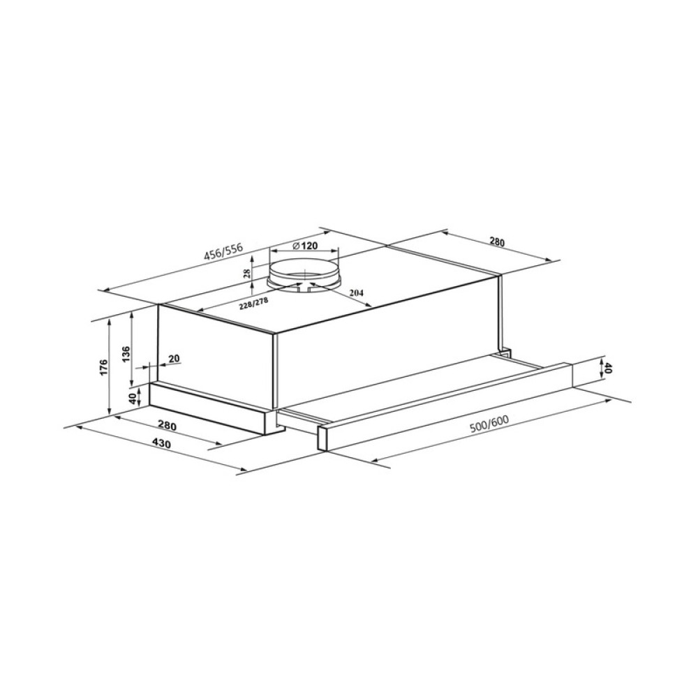 В комплекте с вытяжкой поставляется переходник для подключения к воздуховоду диаметром 120 мм. Также доступен угольный фильтр для работы в режиме рециркуляции, который можно приобрести отдельно.
