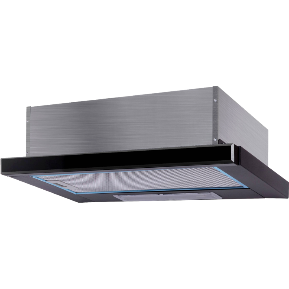 Вытяжка выполнена в современном дизайне с черным стеклом, что делает её отличным дополнением к любому интерьеру кухни. Она не только функциональна, но и эстетически привлекательна, создавая гармоничный образ вашей кухни.
