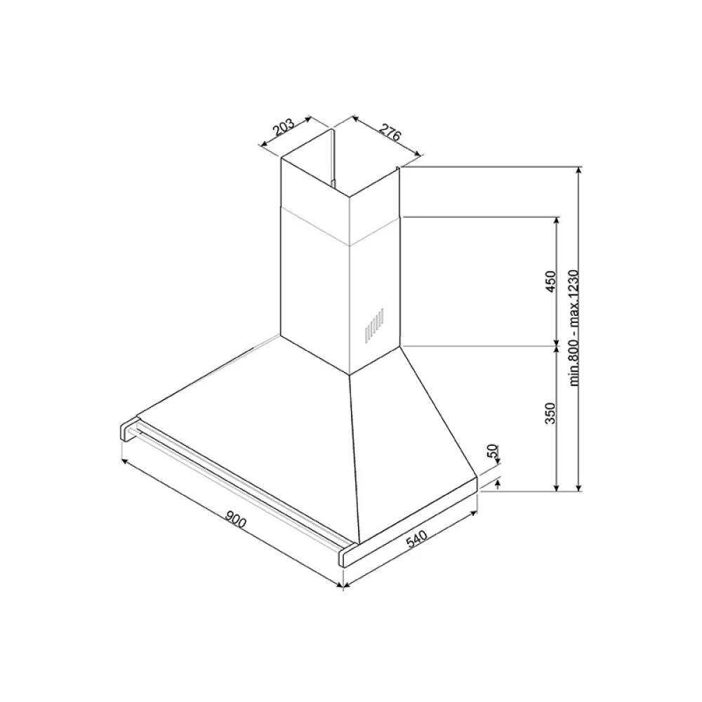Вытяжка SMEG/ Classica,вытяжка каминного (настенного) типа, 90 см, нержавеющая сталь