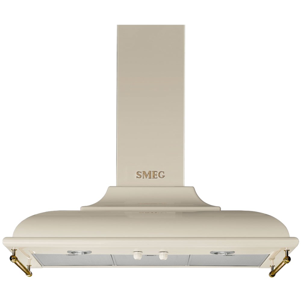 Вытяжка SMEG/ Cortina, вытяжка настенная декоративная, 89,5 см, кремовая / фурнитура (логотип + боковые релинги) латунные в комплекте