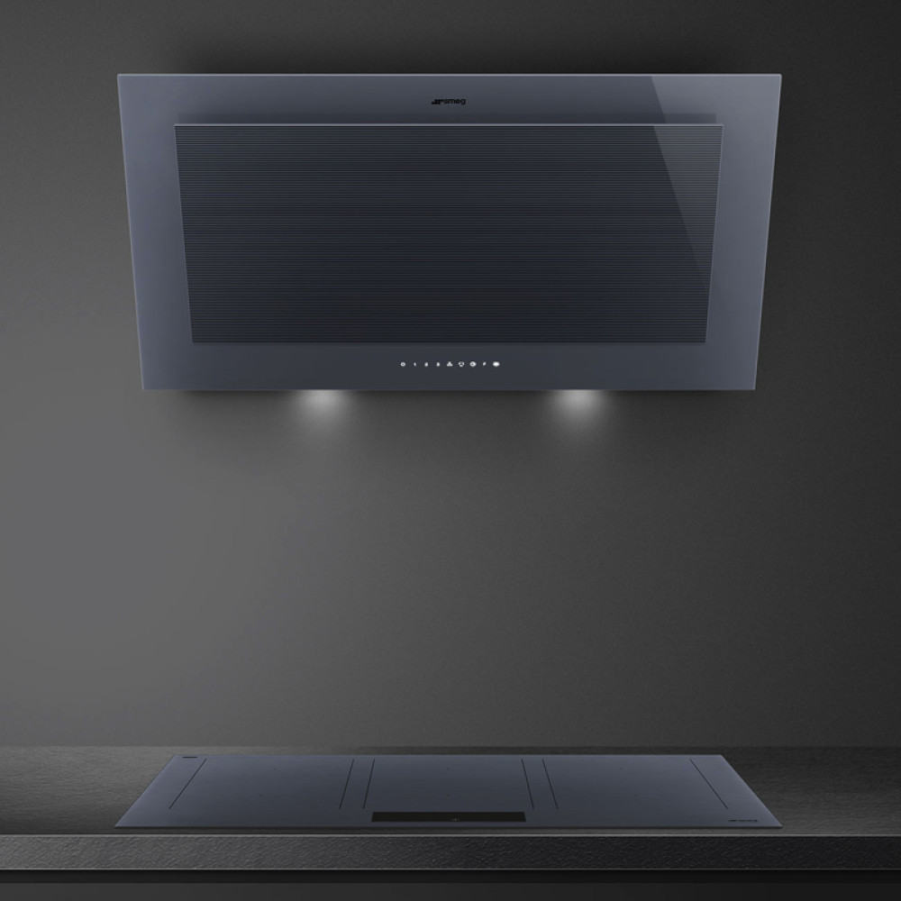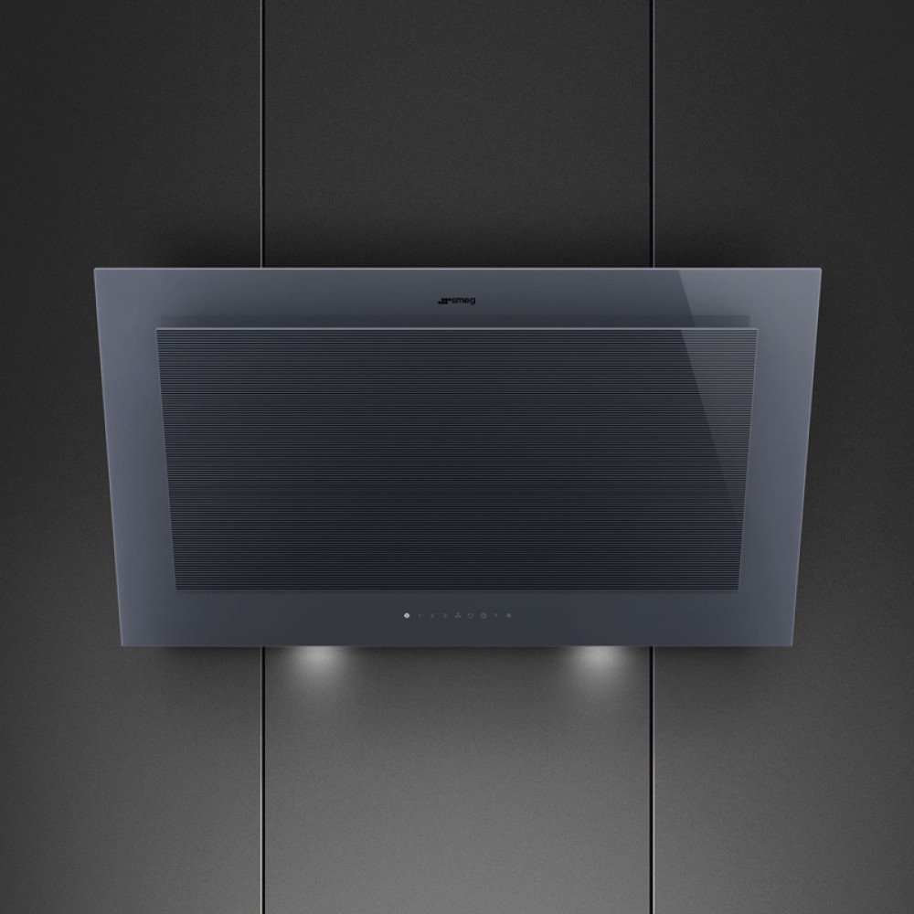 Вытяжка Smeg/ Настенная вытяжка, серия Linea,ширина 90 см,энергоэффективность А+,3 скорости,сенсорное управление,820м/ч, 2 фильтра,цвет Neptune Grey