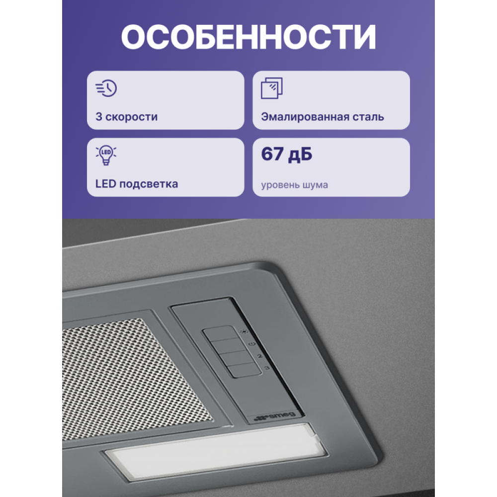 Вытяжка SMEG/ Встраиваемая вытяжка, 54 см , эмалированная сталь, серебристый