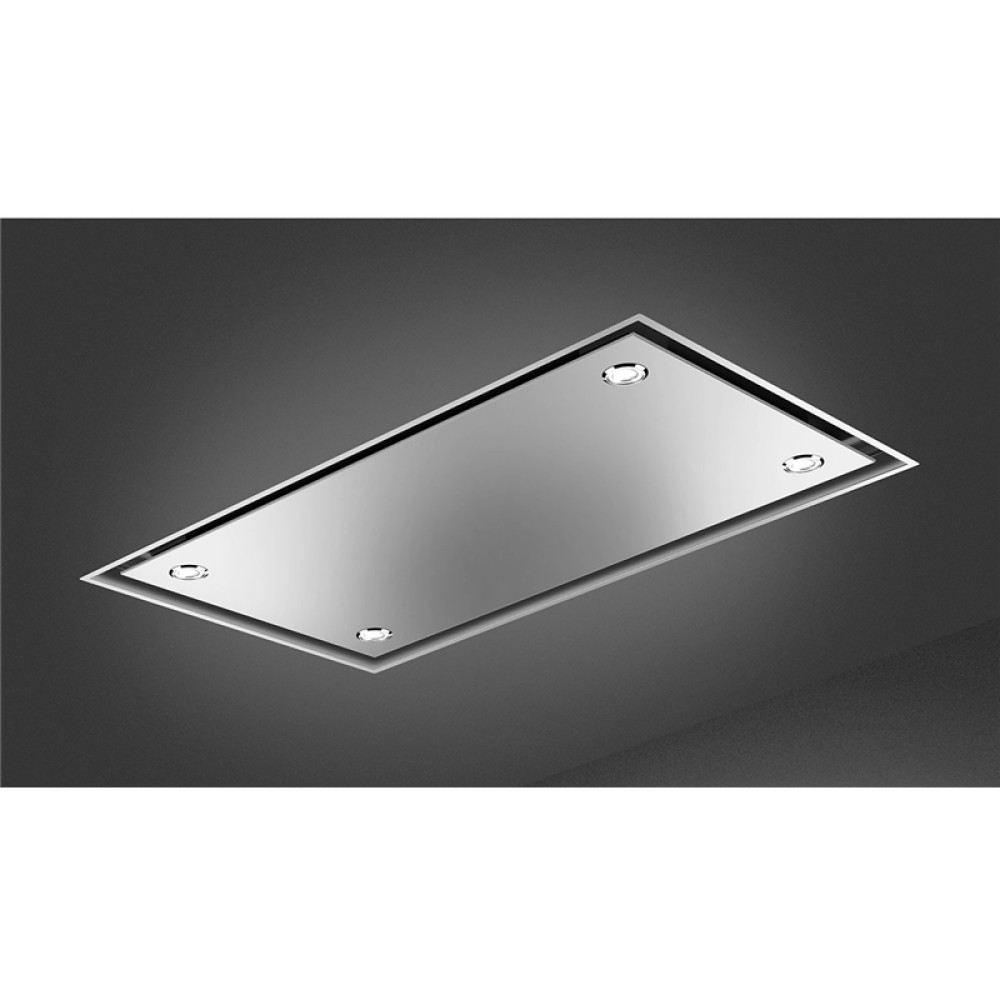 Вытяжка - очень важный прибор на кухне, и, в частности, потолочные вытяжки становятся все более популярными в кухонном дизайне из-за их минималистичной эстетики, поскольку они намного менее навязчивы, чем обычные вытяжки. Потолочная вытяжка Smeg, отделанная стильной матовой нержавеющей сталью, предлагает чистый минималистичный эстетический вид с 4 полосами LED-подсветки, которые элегантно освещают варочную панель.