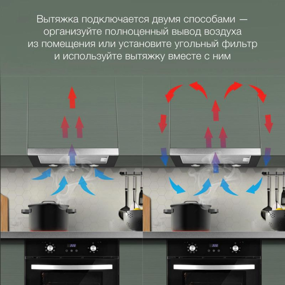 Вытяжка встраиваемая/ Вытяжка встраиваемая Hyundai HBH 6232 IX нержавеющая сталь/черный управление: кнопочное (1 мотор)