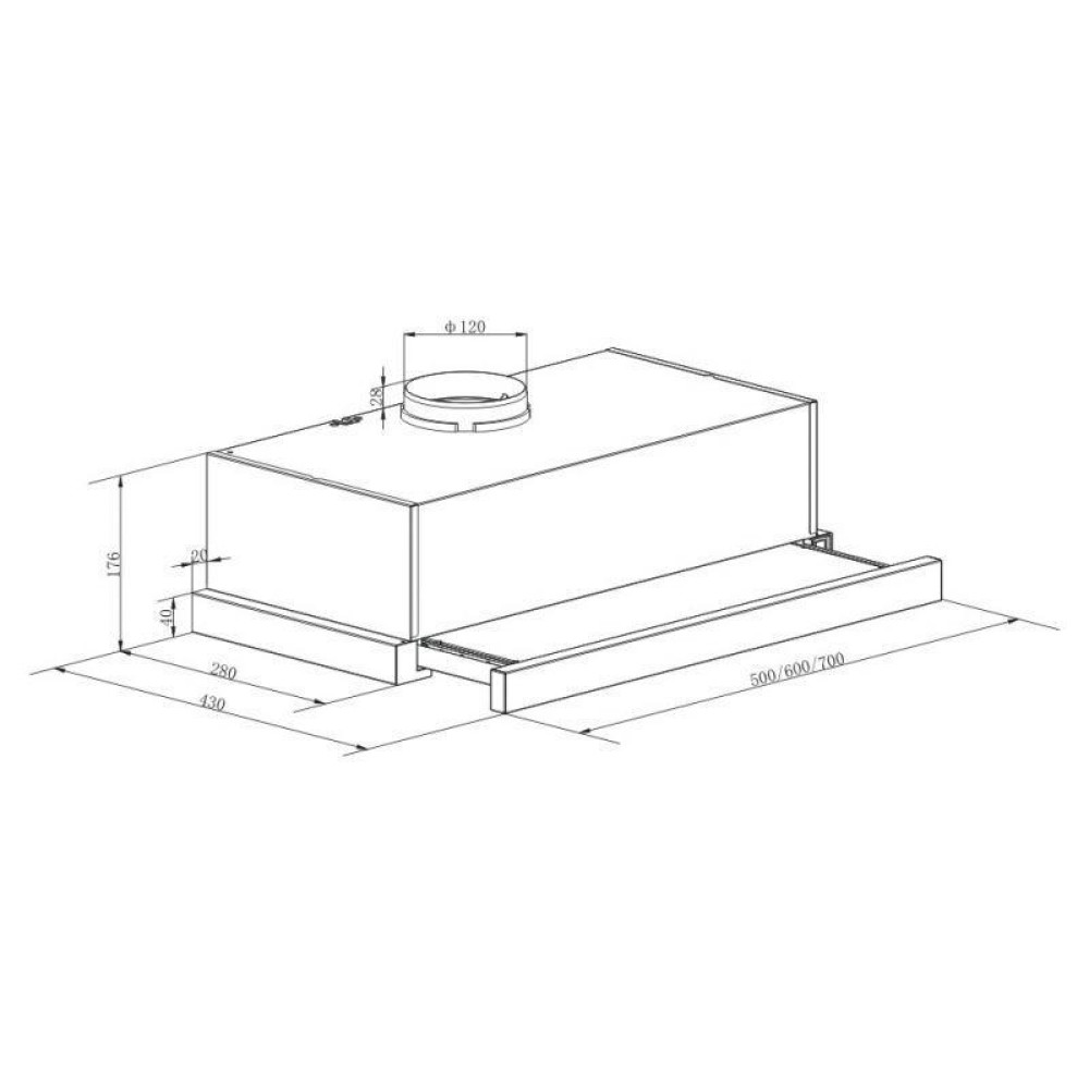 Вытяжка встраиваемая/ Вытяжка встраиваемая Lex Hubble 500 IX нержавеющая сталь управление: кнопочное (1 мотор)