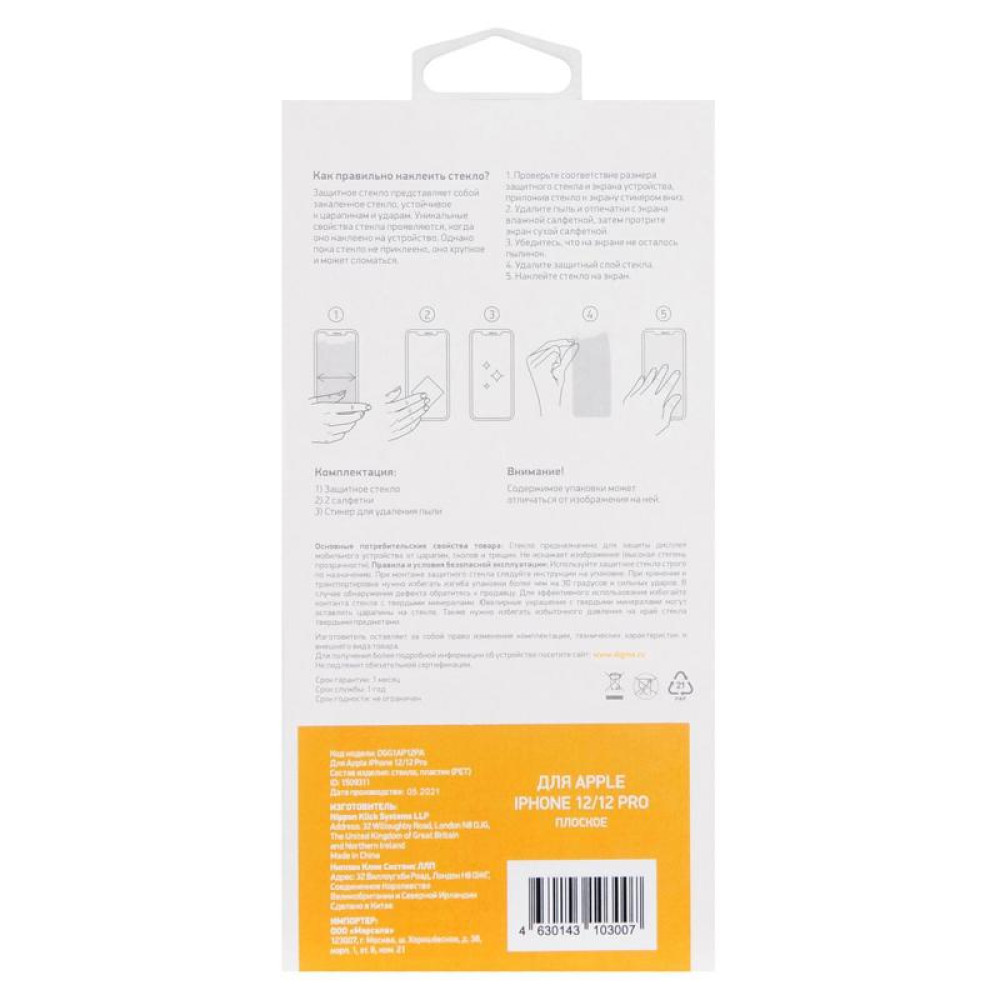 Защитное стекло для экрана Digma для Apple iPhone 12/12 Pro прозрачная 1шт. (DGG1AP12PA)