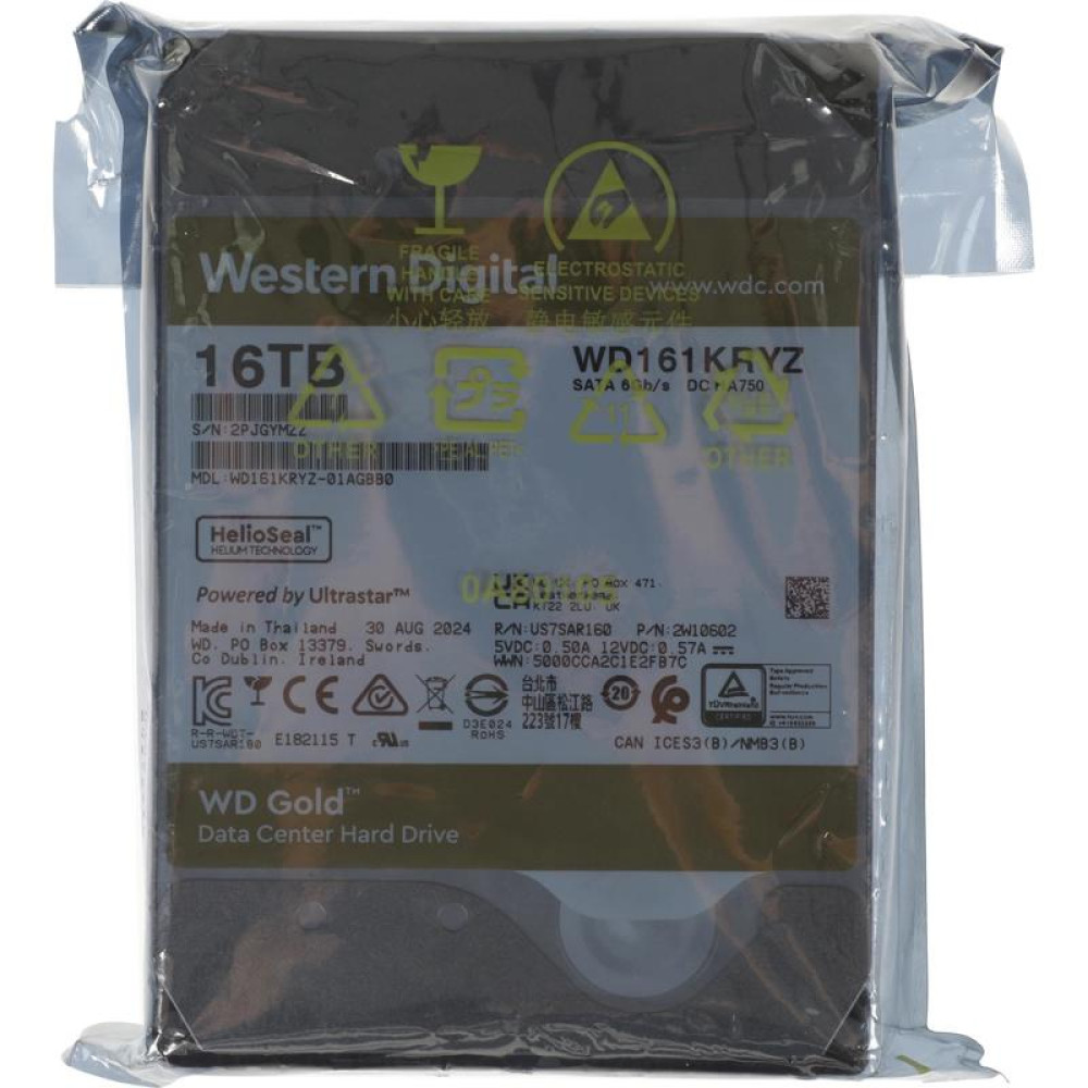 Жесткий диск WD SATA-III 16Tb WD161KRYZ Server Gold (7200rpm) 512Mb 3.5" [WD161KRYZ]